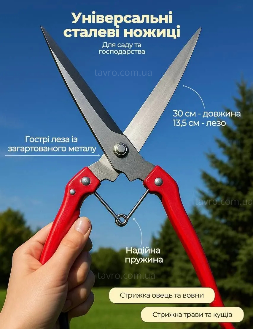 Ножиці дуже зручні, леза довгі та гострі. Використовую для обрізки кущів і трави — справляються на відмінно. Не важкі, рука не втомлюється.